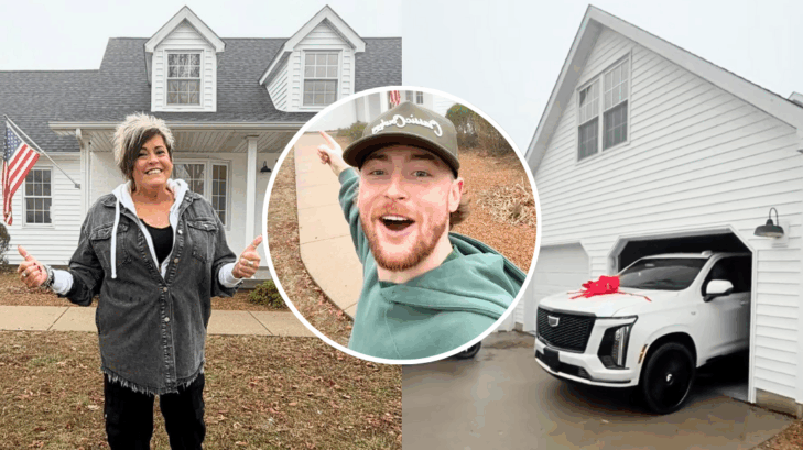 Speaking to his mom in the front yard, he then reveals that he bought her a new car as he hands her the keys to a new Cadillac Escalade.